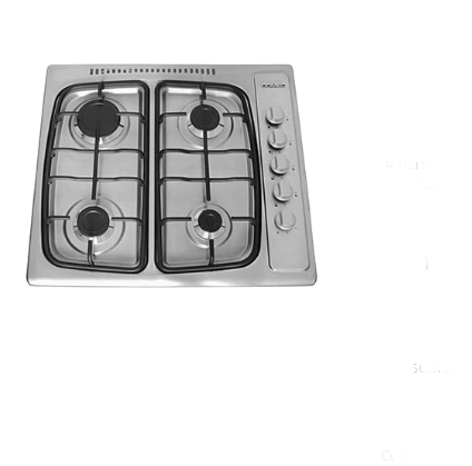 Anafe multigas, 4 hornallas, encendido eléctrico, timer, rejillas simil fundición, ventilación de salida de gases, valvula de seguridad, acero inoxidable.-