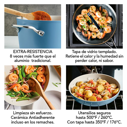La cerámica antiadherente además es libre de PFAS, BPA, plomo ni cadmio