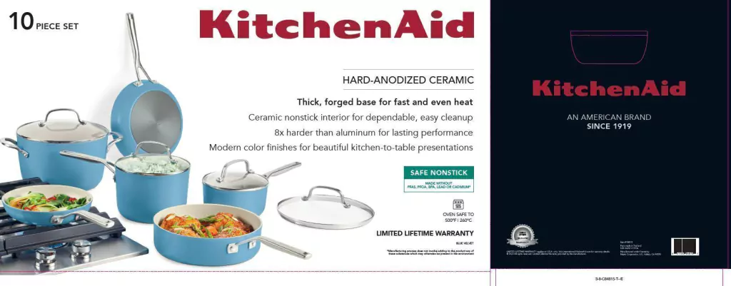 Batería de cocina Kitchenaid 10 piezas, Azul Velvet
