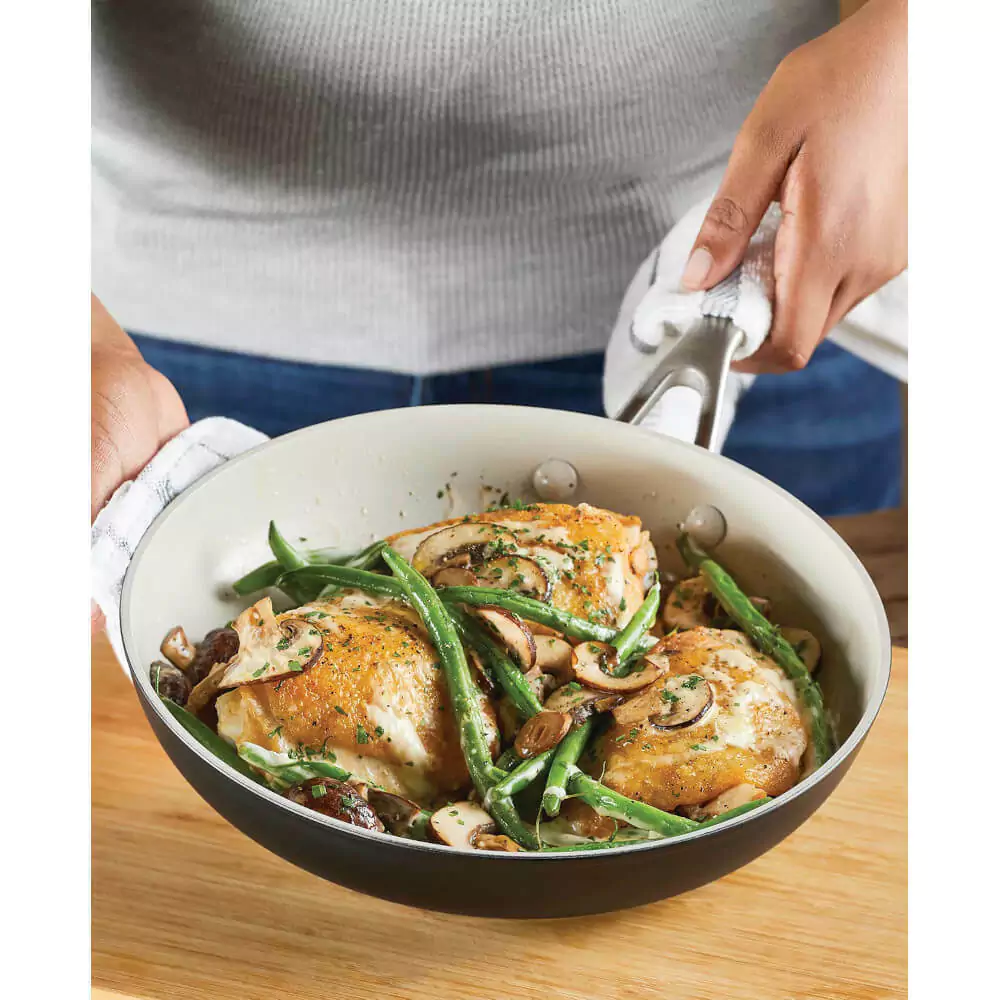 Cerámica antiadherente: La cerámica antiadherente además es libre de PFAS, BPA, plomo ni cadmio* (*El proceso de fabricación no implica la adición al producto de ninguna de estas sustancias que, de otro modo, podrían estar presentes en el medio ambiente)