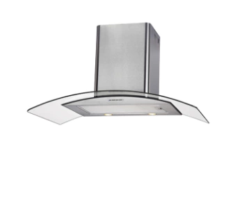Campana extractora para adosar a la pared, frente recto,3 velocidades, luz, filtros metálicos lavables, temporizador de apagado, acero inoxidable, cristal curvo