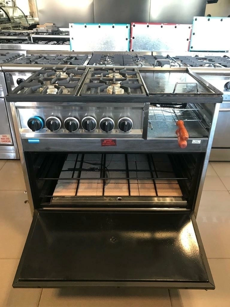 . Cocina 4 Hornallas y Plancha Bifera de 86 cm de ancho