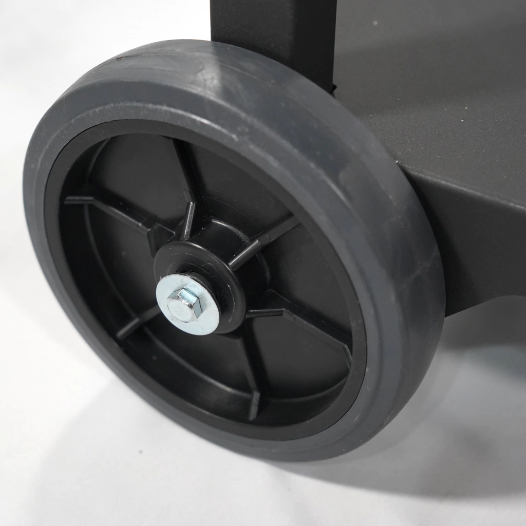 En la base del carro hay un estante de madera para apoyar los elementos que desee.