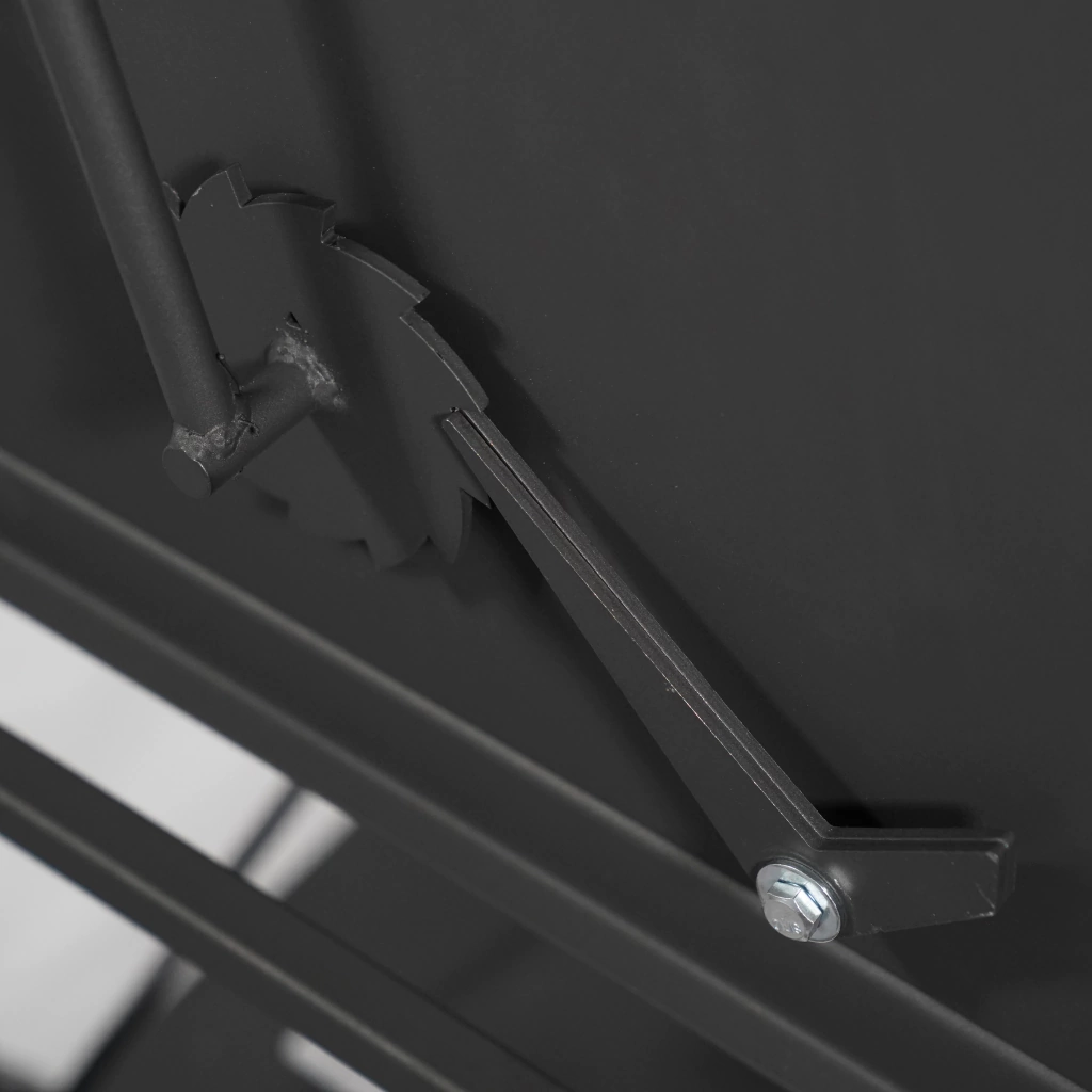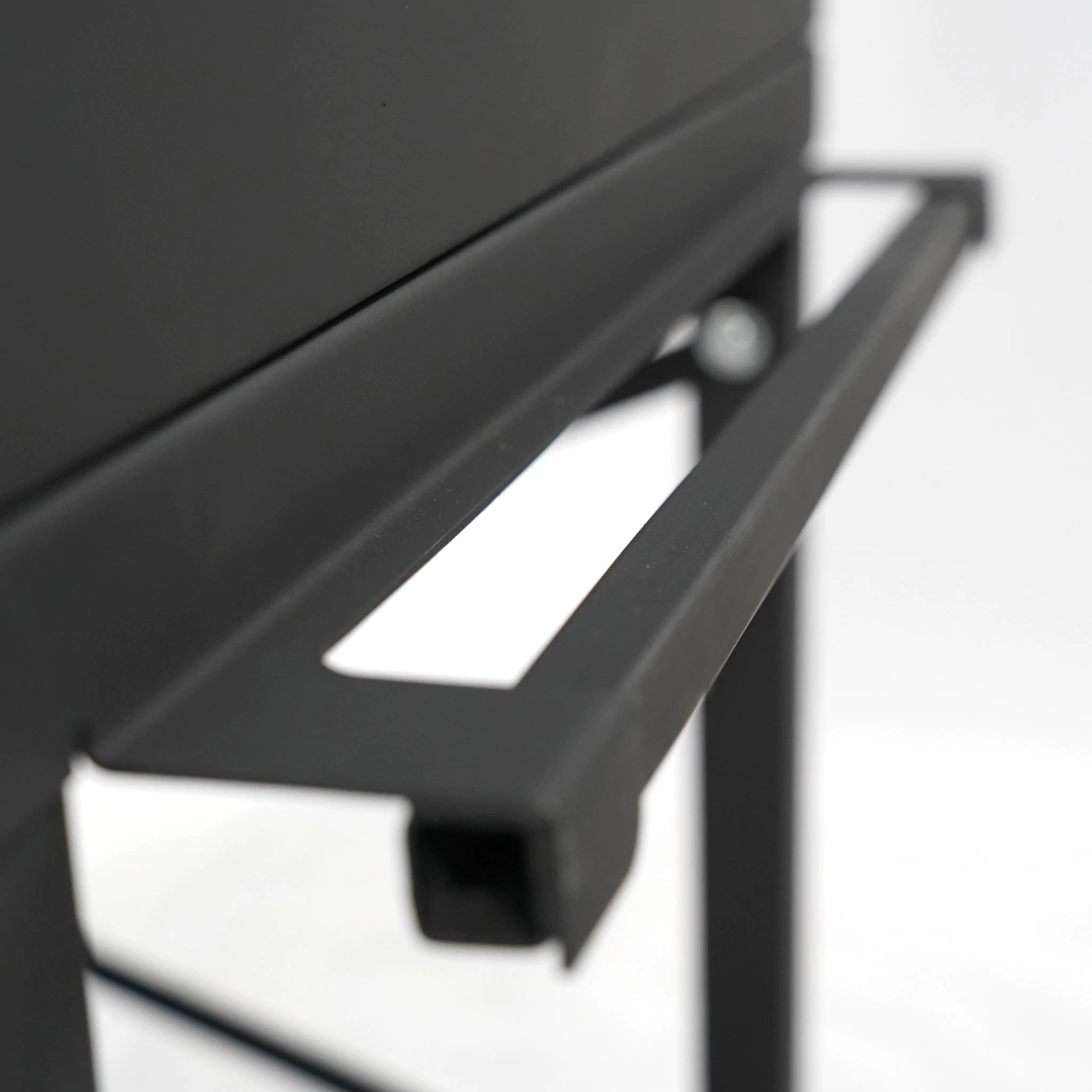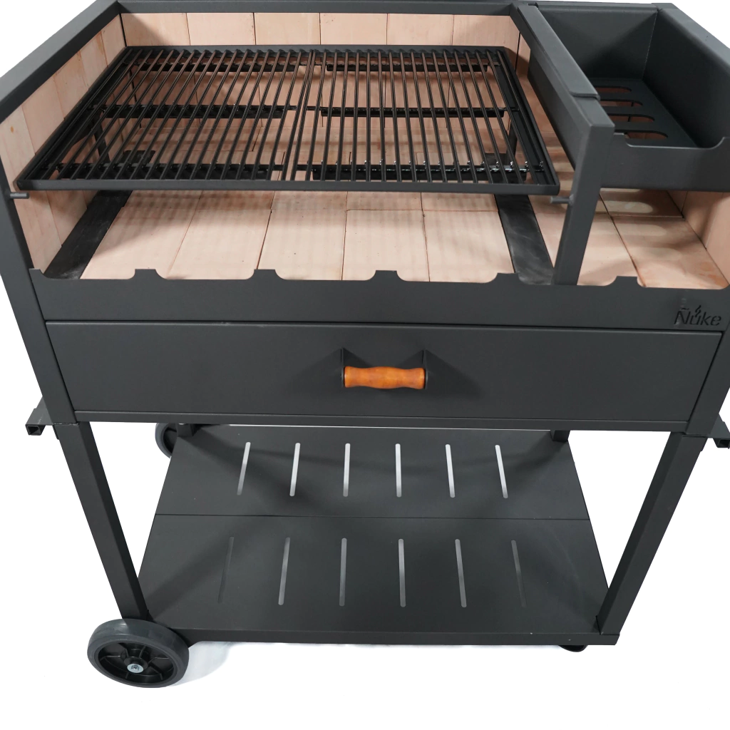 Tiene un original sistema de regulación de altura de la parrilla, una tapa ideal para hacer pizzas a la parrilla o para días ventosos y un cajón para poder guardar la pala, atizador o lo que se quiera.
